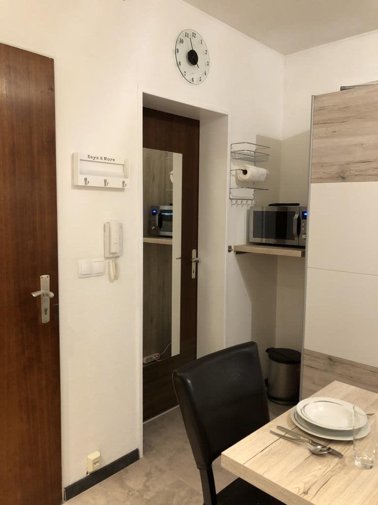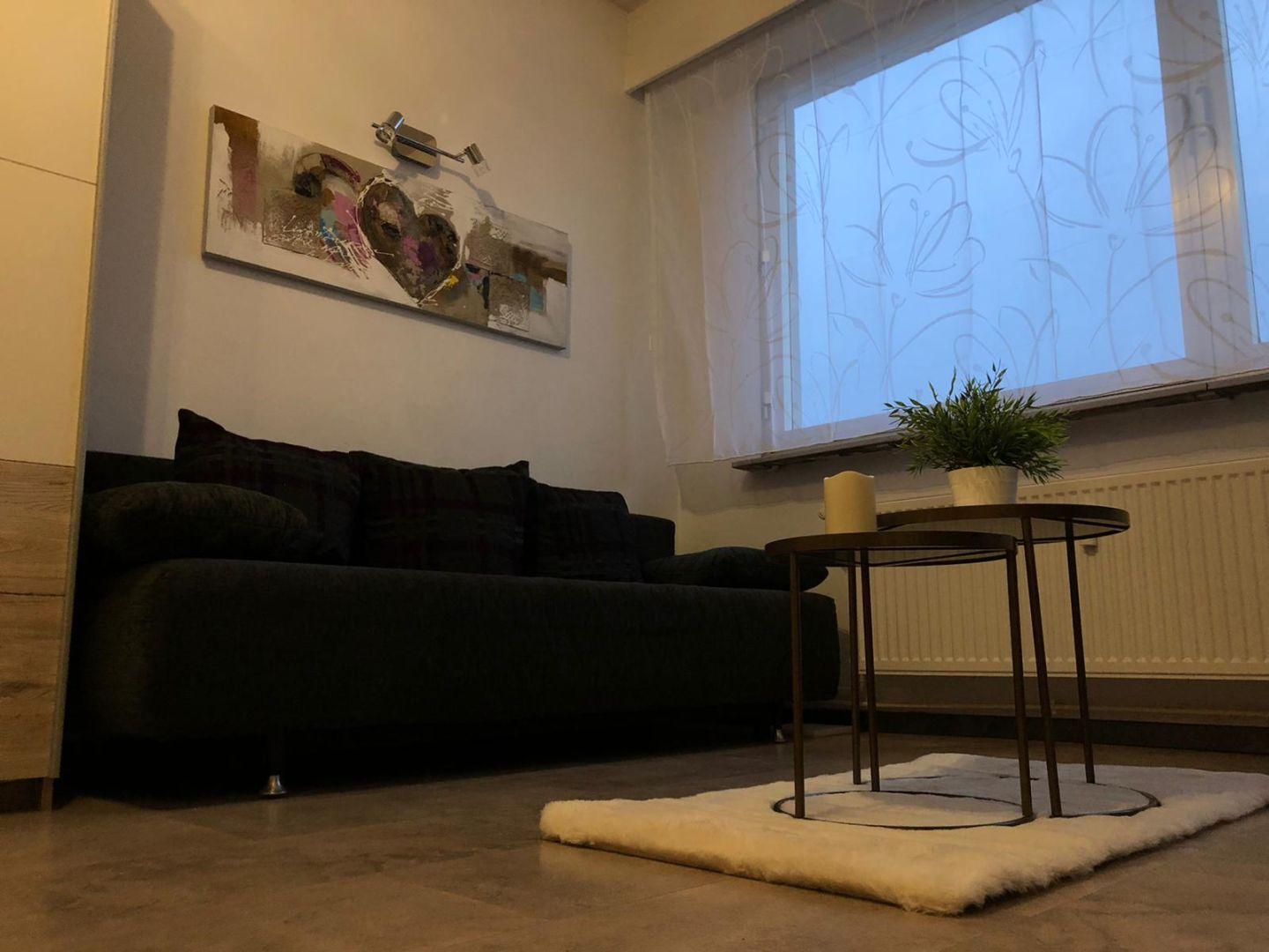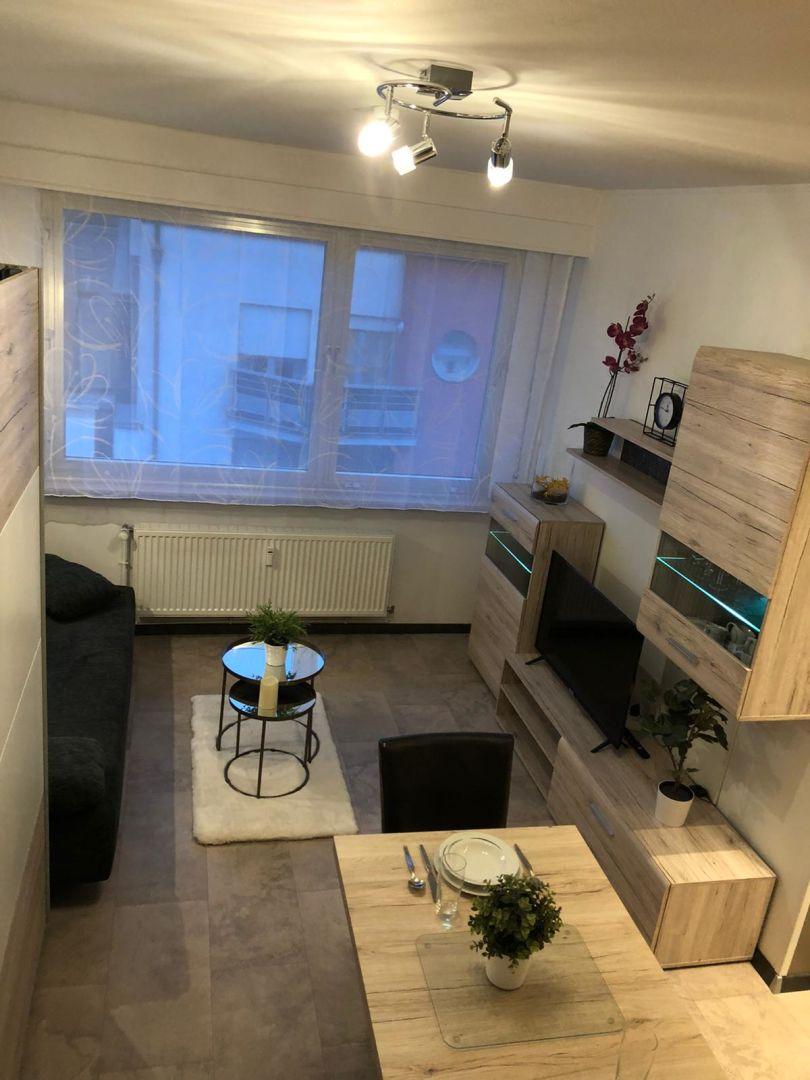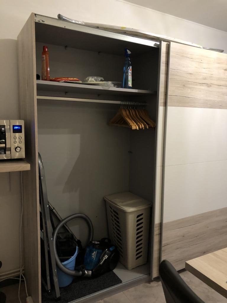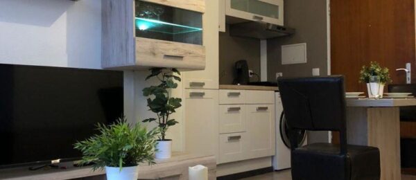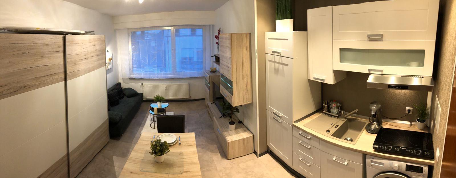 L’Ameublement comprend : • une cuisine complètement équipée avec four/micro-ondes, hotte, frigo, machine à café, casseroles, poêles, divers outils de cuisine et vaisselle complète pour 6 personnes, 1 table avec rallonge, 4 chaises (dont 2 se trouvant à la cave); • le côté séjour/chambre est équipé d’armoires de rangement, canapé/lit à 3 places (140/200 cm), petite tables de salon, table et fer à repasser, aspirateur et télévision ; • le côté chambre est équipé d’une grande armoire à vêtements (1 couette, 2 oreillers, 2 parures complètes de draps de lit, taies d’oreillers et housses de couette) ; • la salle de douche et équipée de draps de bains et serviettes.