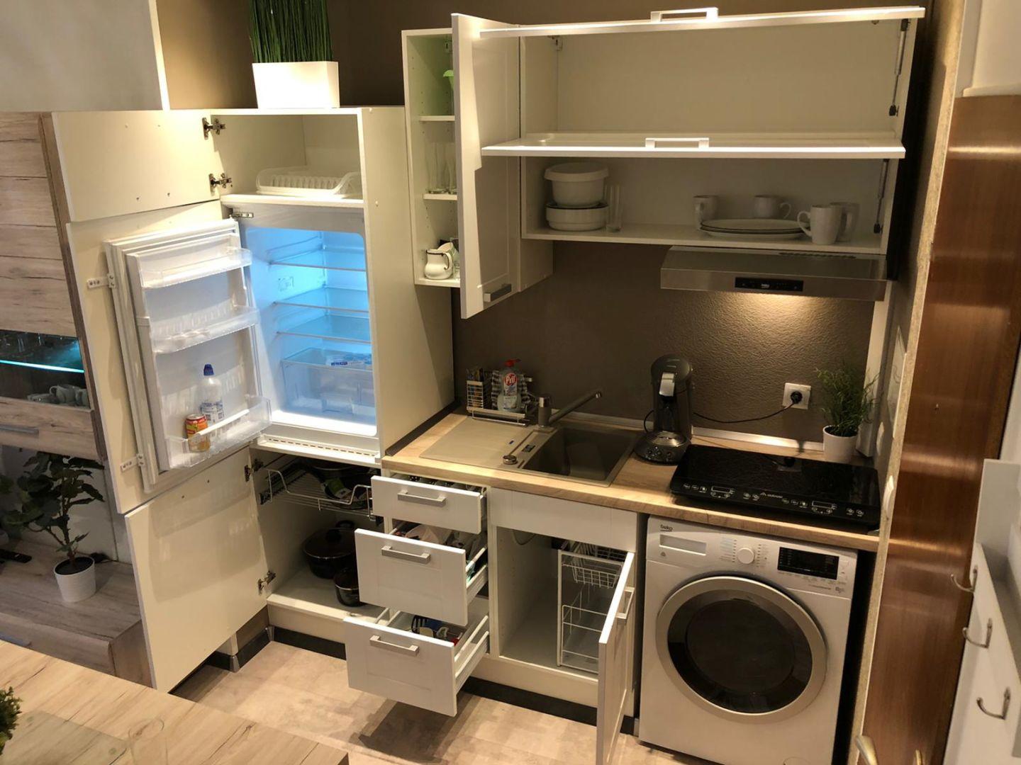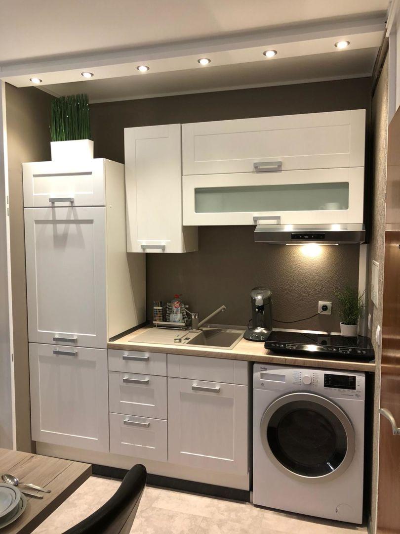 Comprenant : hall d’entrée ouvert donnant accès à la pièce principale avec cuisine entièrement équipée, salle de douche avec W.C. et machine à laver séchante, cave.