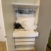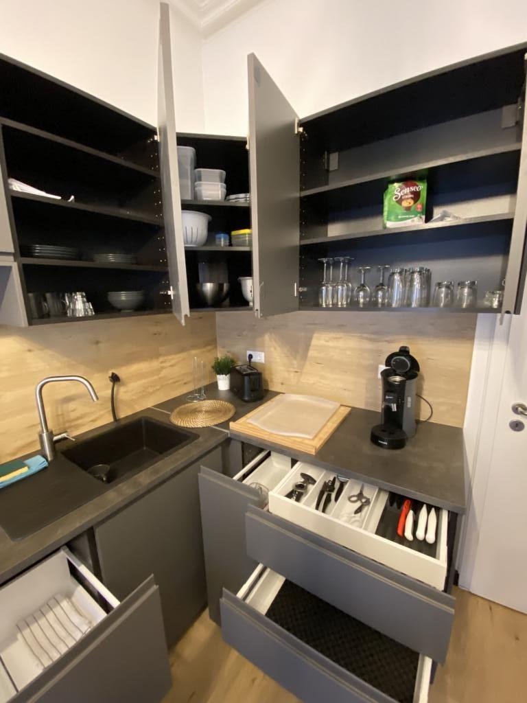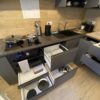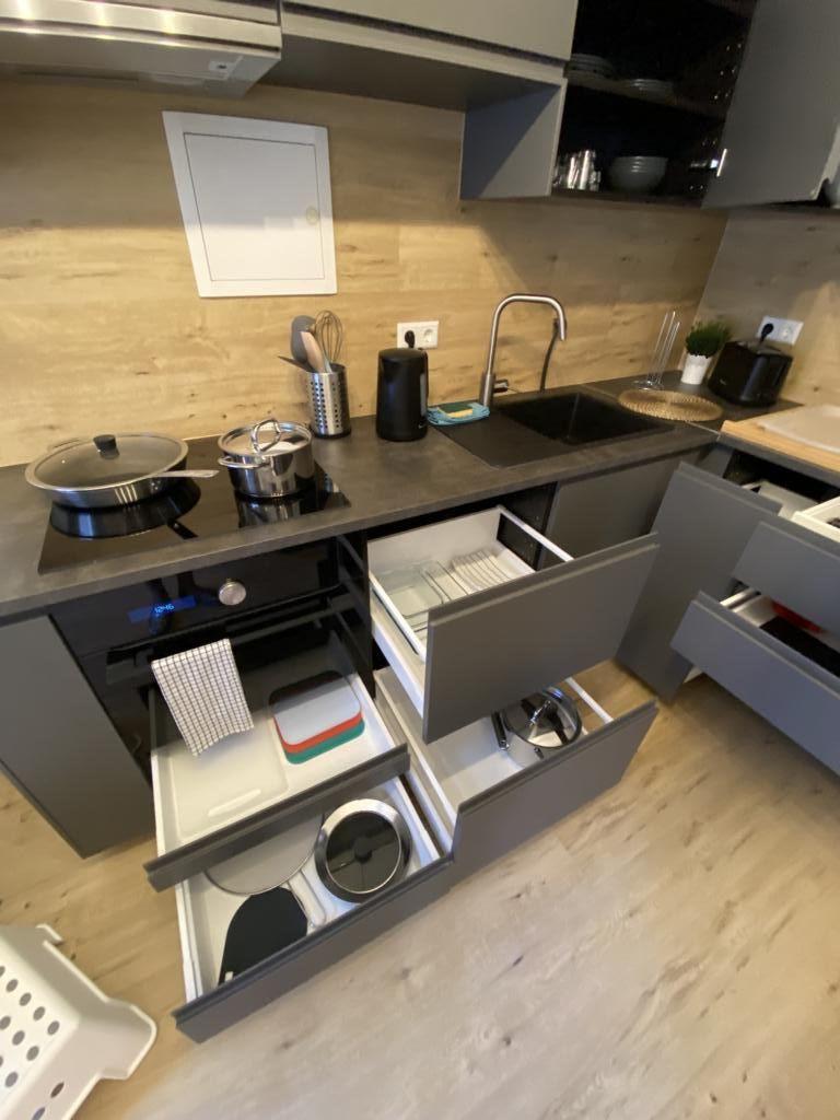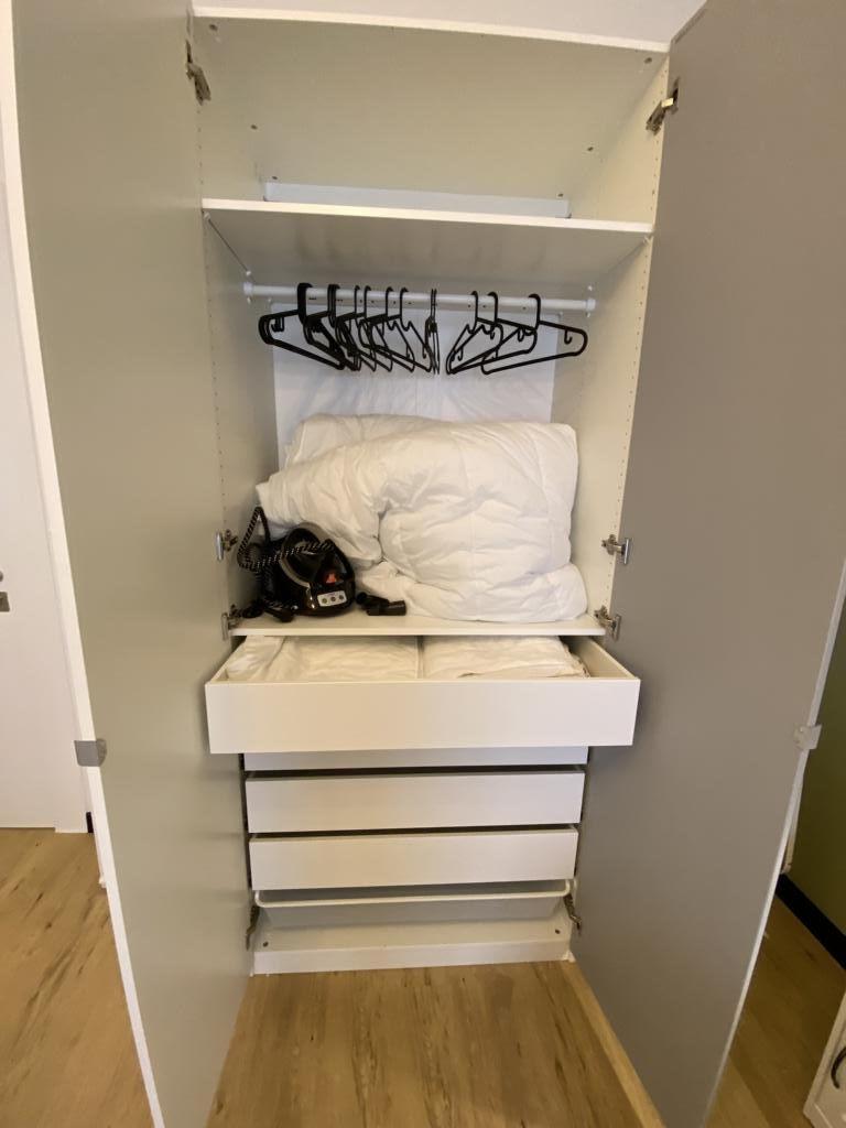 L’Ameublement comprend : – une cuisine complètement équipée avec four/micro-ondes, hotte, lave-vaisselle, frigo américain avec congélateur, machine à café, bouilloire, toaster, casseroles, poêles, divers outils de cuisine et vaisselle complète pour 6 personnes, 1 table (avec rallonge), 4 chaises ; – le côté séjour est équipé d’armoires de rangement, commodes, canapé/lit à 2,5 places (160/200 cm), table et fer à repasser, aspirateur et télévision ; – le côté chambre est équipé d’une grande armoire à vêtements (1 couette, 2 oreillers, 2 parures complètes de draps de lit, taies d’oreillers et housses de couette) ; – la salle de douche et équipée d’armoires de rangement, de draps de bains et serviettes.