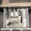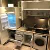 • une cuisine complètement équipée avec four/micro-ondes, hotte, frigo, machine à café, casseroles, poêles, divers outils de cuisine et vaisselle complète pour 6 personnes, 1 table avec rallonge, 4 chaises (dont 2 se trouvant à la cave);